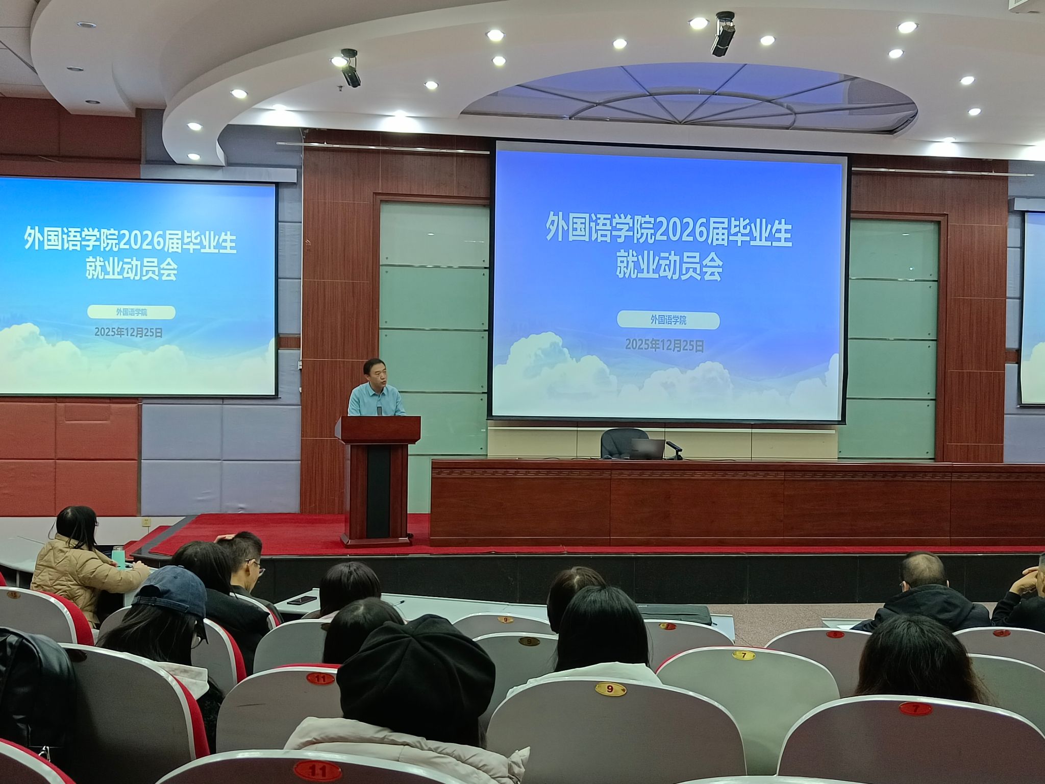 12月25日外国语学院召开2026届毕业生就业动员大会。学院领导、就业帮扶教师及全体2026届毕业生参加。